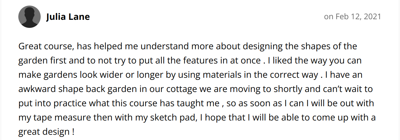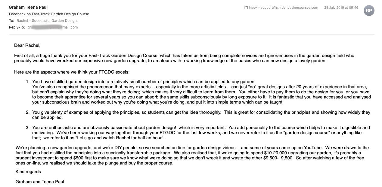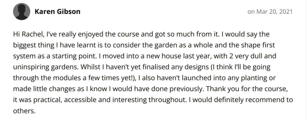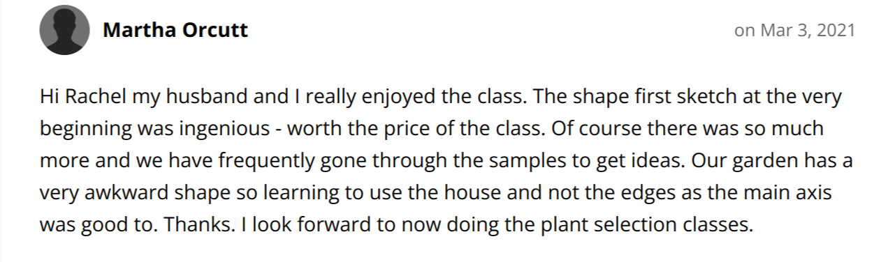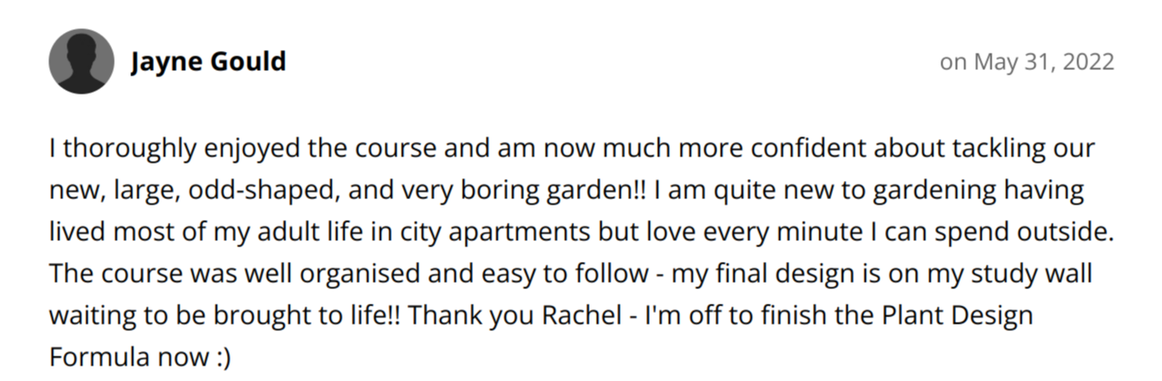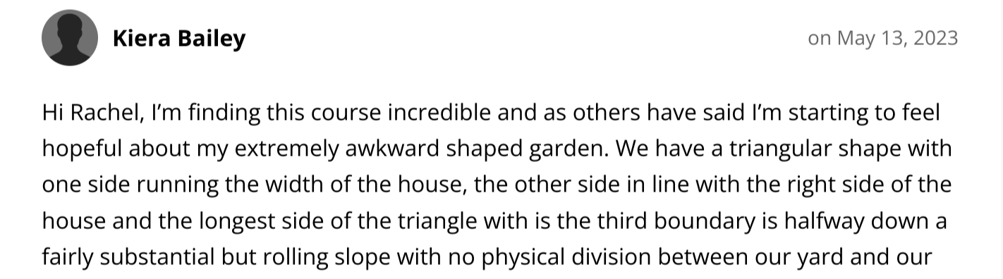 Immediate, lifetime access to the Survey Formula, Garden Style Wizard, Cheat's Sketching Guide, Plan Drawing Formula and the Fast-Track Garden Formula Courses and ability to ask Rachel questions in the members' area should you need to.