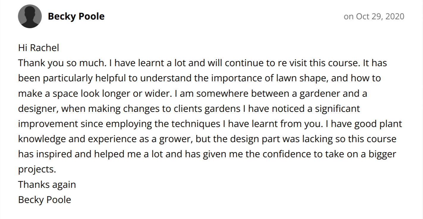 You will definitely learn something new. The methods I teach in the Great Garden Formula are ones that I’ve developed over the last 25 years as a professional garden designer, so you won’t have come across them anywhere else. Good design is a completely different skill to gardening. What you’ll learn in the course will enhance your existing knowledge.